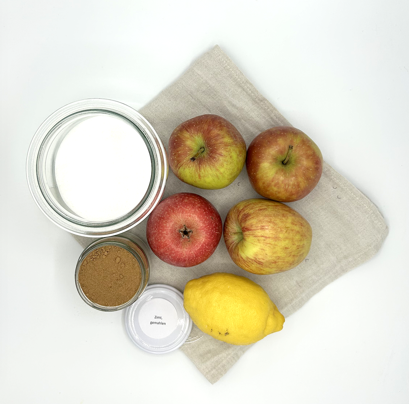 - 80 g Zucker (oder weniger, je nach Süße der Äpfel)